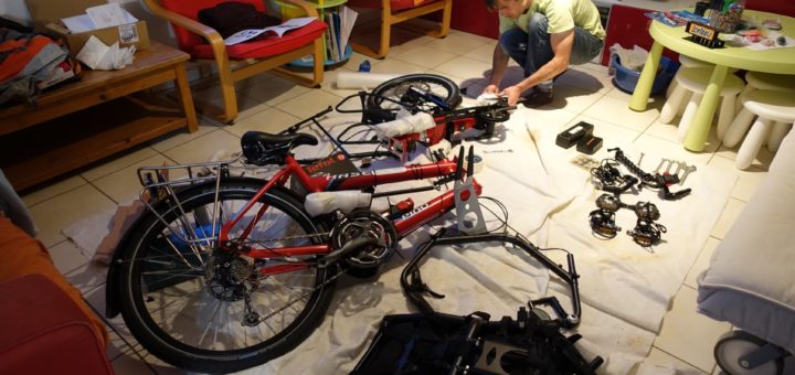 Dans une semaine c’est le départ ! Il est grand temps d’emballer les vélos. On commence par celui de Papa et Lucas, appelé aussi Satanas. Mais avant ça, il faut le démonter car nous...