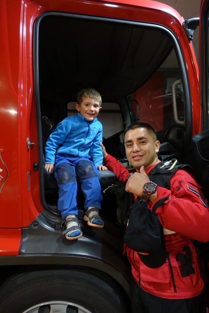 Martin et Lucas ont les yeux qui brillent. Nous prenons des photos avec Vladimir, il fait même une démonstration de descente de barre du 1er étage. Peu de temps après, une alerte pour une fuite de gaz et c’est le gros camion de pompiers qui part sous les yeux ébahis des enfants !