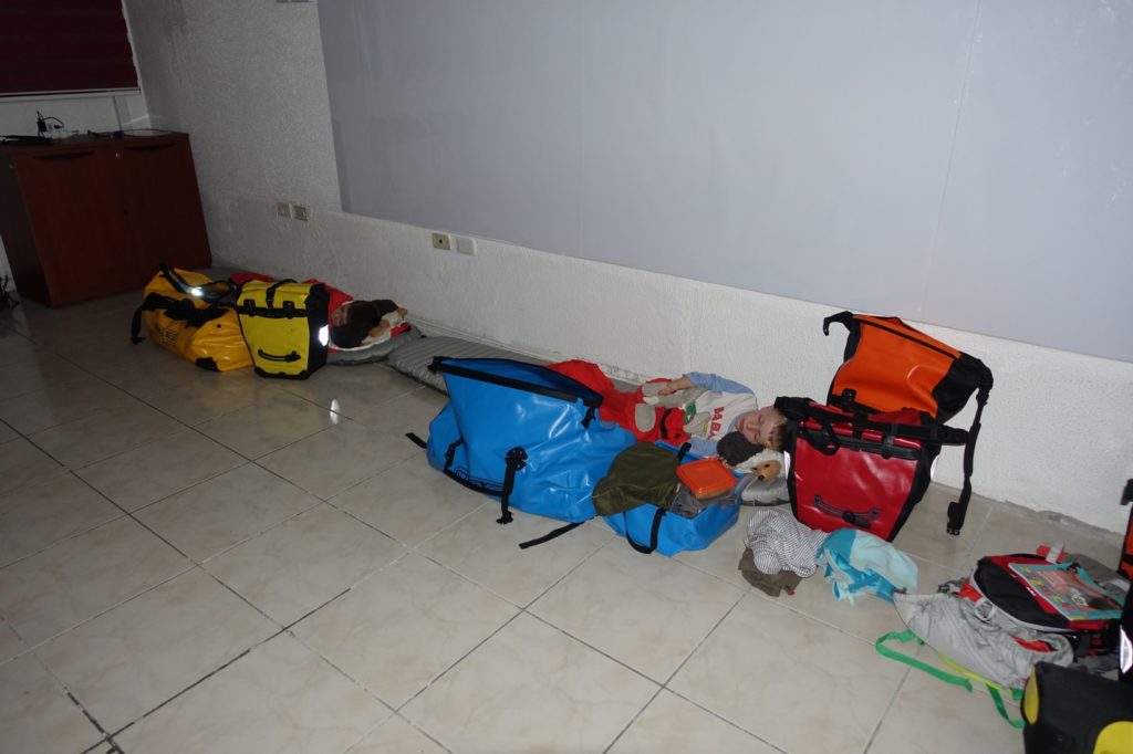 Il est maintenant l’heure de retourner voir les pompiers. Nous sommes super bien accueillis ! Ils nous ouvrent leur salle de cours pour dormir et nous donnent accès à leur cuisine et aux toilettes. Nous sommes bien installés, impossible de rêver mieux 🙂