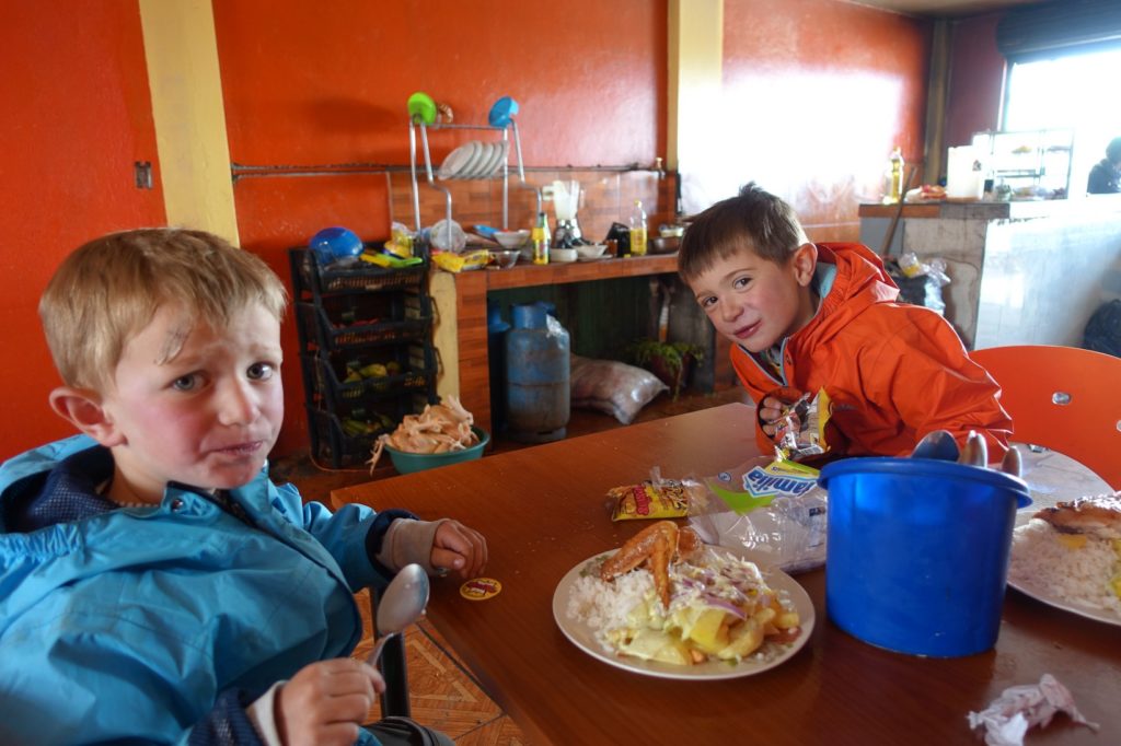 Le vénézuélien revient et nous donne du lait et du pain pour les petits. C’est très gentil de sa part. Il nous propose d’utiliser sa douche. Mais, nous filons rapidement nous mettre au lit, demain nous nous levons tôt pour prendre le train de la Nariz del Diablo à 8h00.