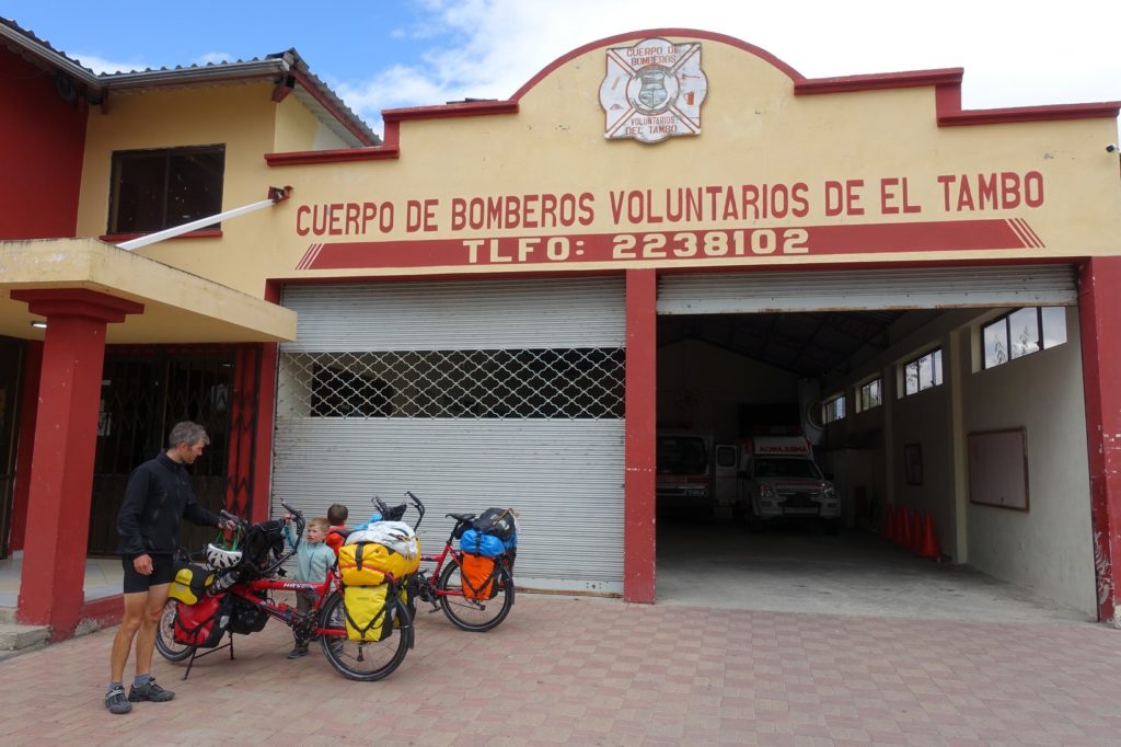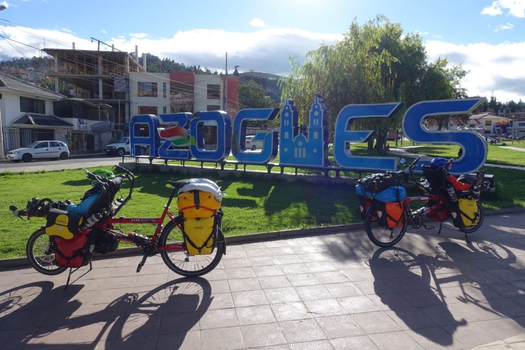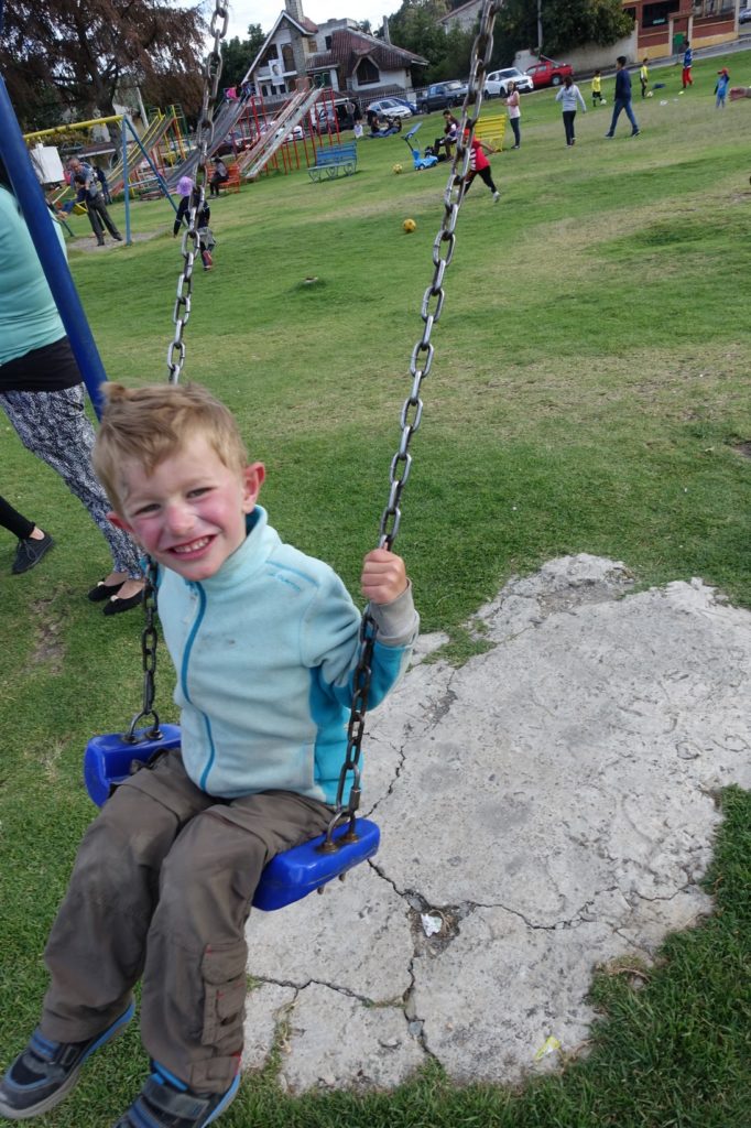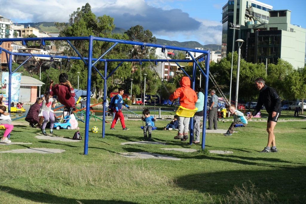 Peu de temps après, nous rejoignons Azogues. Entre temps, Maman a cru perdre un mollet à cause d’un (gros) chien qui a été surpris par son passage. Nous trouvons un parc pour enfants pour le goûter. Papa fait essayer le vélo à un petit garçon et nous faisons la connaissance d’une cycliste française, Marie. Elle vient de Strasbourg et passe 3 mois en Equateur. Elle arrive de Cuenca. Ce soir, elle va sûrement aller chez les pompiers, nous la retrouverons très certainement là-bas.