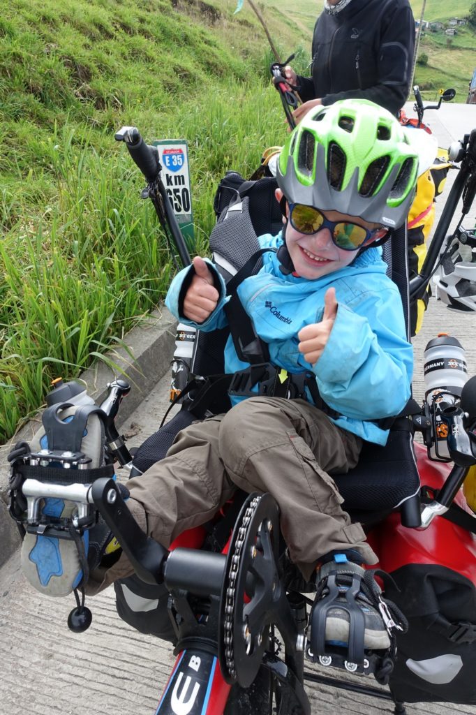 Ça y est, la montée est terminée ! Martin va mieux, il a même pédalé un petit peu. Nous arrivons sur un petit plateau. Il y a plus de circulation aujourd’hui, sûrement parce que nous nous rapprochons de Cuenca…