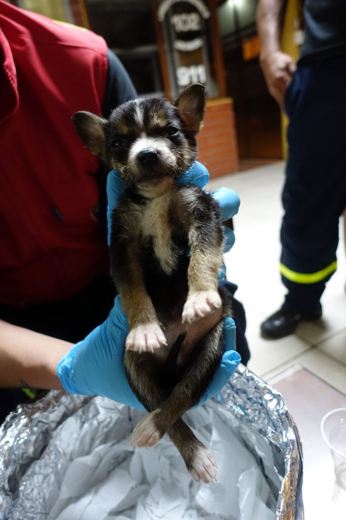 Il commence à faire frais, nous allons à la caserne. Ce soir, nous dormons dans le dortoir avec les pompiers ! Martin et Lucas ont le droit à des dessins animés à la télévision. Puis Lucas accompagne Maman pour acheter du yaourt et du pain pour le dîner. Nous discutons avec Marie pendant que nous mangeons. Un pompier a trouvé un chiot sur la route, il le nourrit, il est trop mignon !