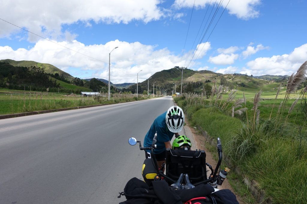 Ce matin, nous disons au revoir à Myriam, Aurélien, Olivia et Eliott. Ils seront les bienvenus à Saint-Hilaire quand nous serons tous rentrés. Il est 9h30 quand nous remontons sur les vélos. Ça faisait longtemps ! Après une petite hésitation, nous décidons de passer par Turi au lieu de prendre directement la Panaméricaine. Ça nous rajoute 200m de dénivelé, mais nous passerons par une petite route pour commencer et en plus nous profiterons de la vue sur Cuenca.