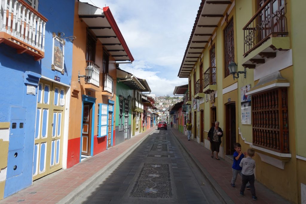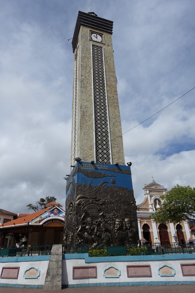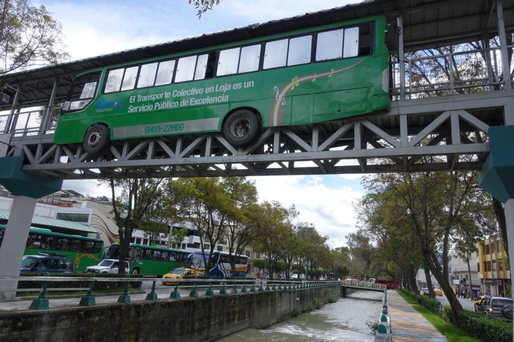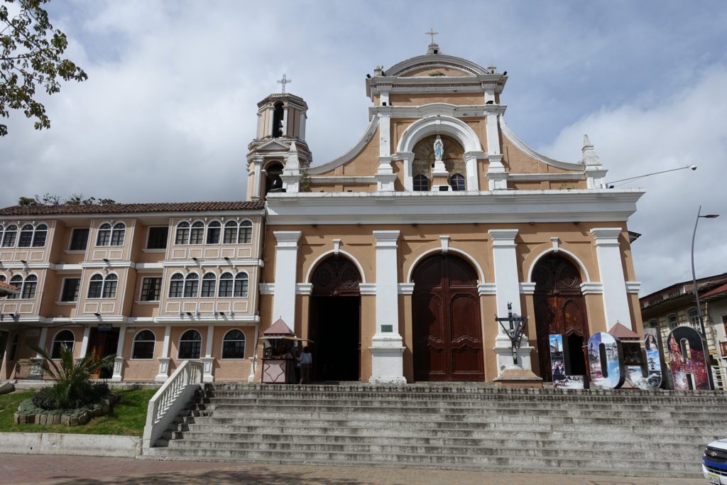 Il pleuviote sous le soleil (on se croirait en Bretagne), nous allons donc en direction du téléphérique à pied. Nous passons par les nombreuses places de Loja, chacune avec son église.
