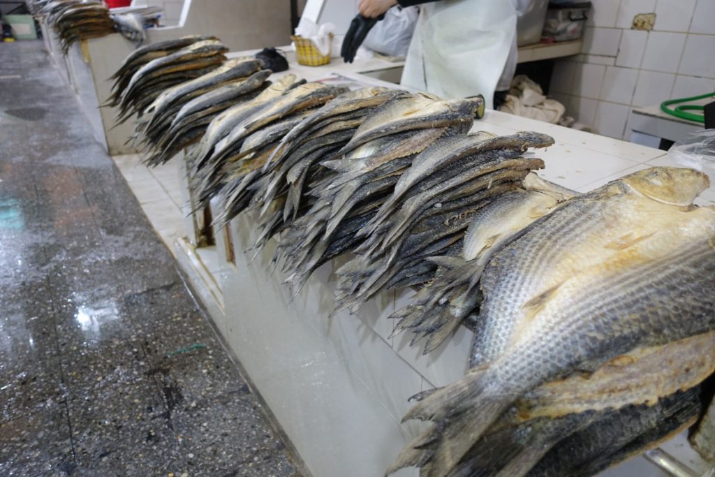 Nous allons ensuite faire quelques courses au marché pour le départ à vélo demain. Nous déambulons entre les étales, c’est agréable.