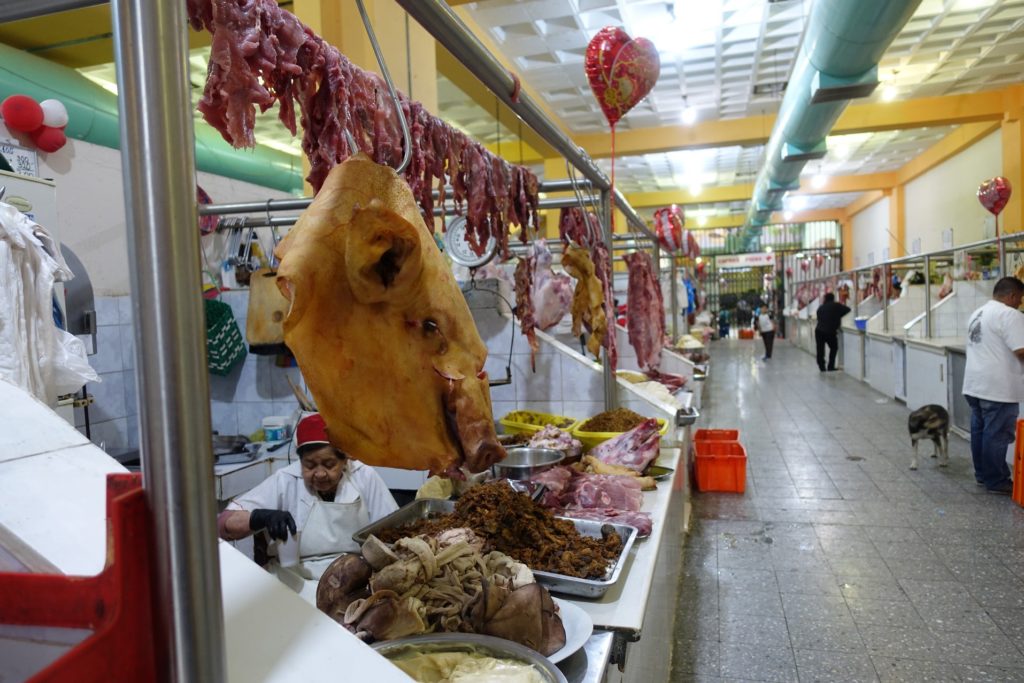 En chemin pour aller déjeuner, nous visitons un petit marché. Les enfants dégustent des empañadas au fromage. Beaucoup de monde mange, mais nous avons envie de tamales et d’empañada de verde. Nous allons retourner au restaurant d’hier.