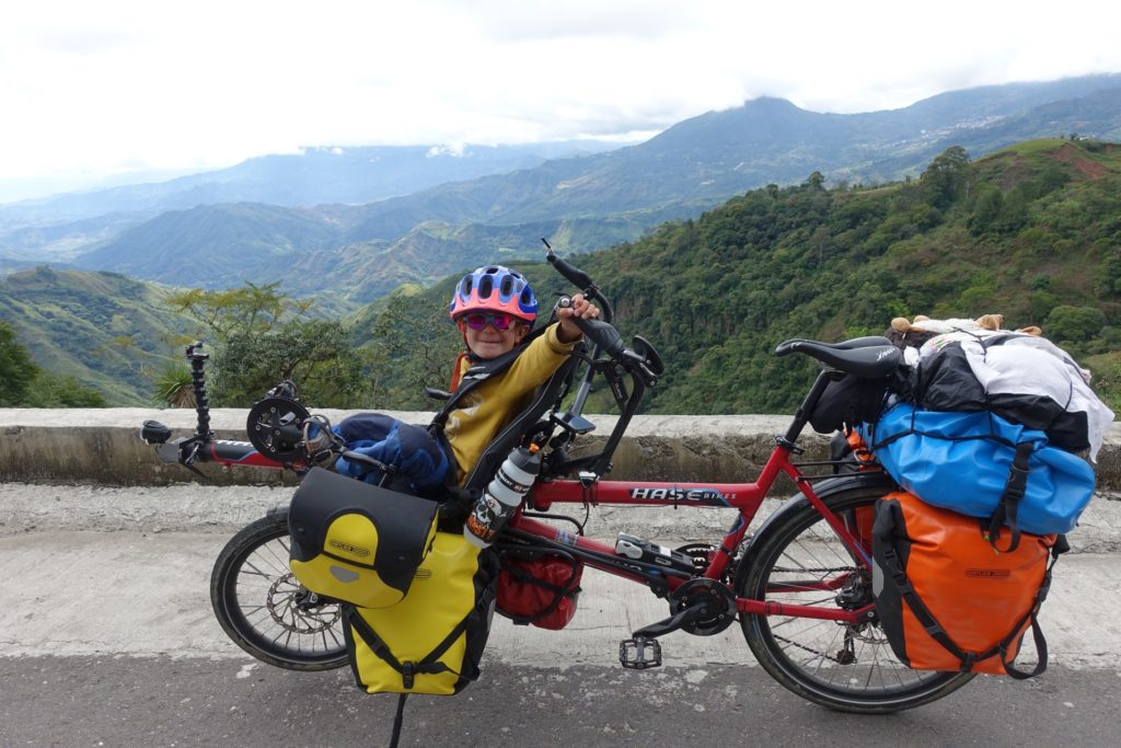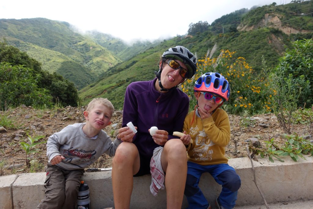 Le soleil sort de derrière les nuages quand nous attaquons l’ascension du jour. Il fait très, très chaud. Nous grimpons sur une crête. C’est très beau mais très difficile aussi. Certaines épingles sont vraiment raides ! Nous pique-niquons au bord de la route après la sieste de Martin. Nous ne sommes pas super bien installés mais Maman avait vraiment besoin d’une pause.