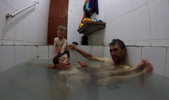 A 6h00, une porte s’ouvre en grinçant. Nous sommes tous réveillés en sursaut. Dur de se rendormir. Nous restons un peu au lit puis les enfants veulent jouer avec les Lego (enfin, une imitation)....