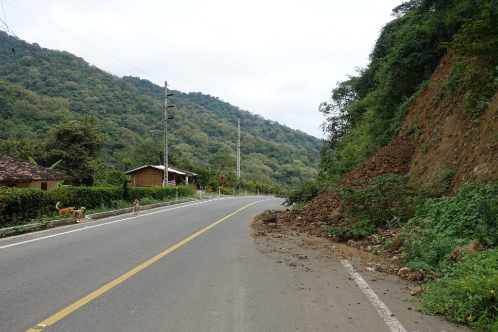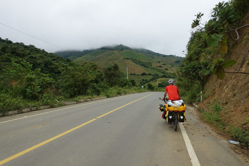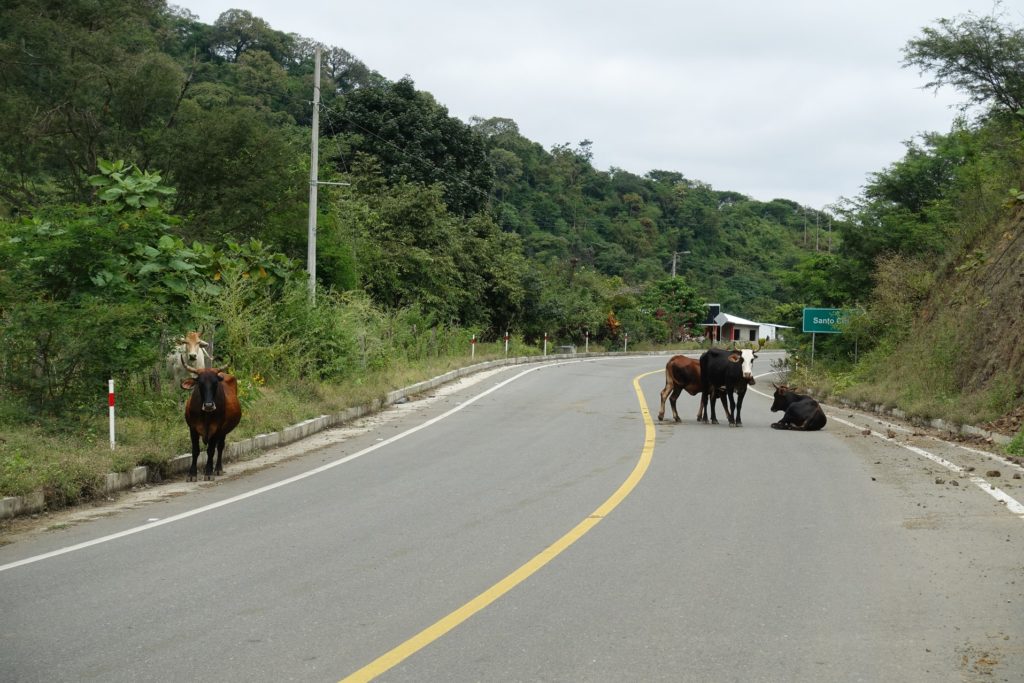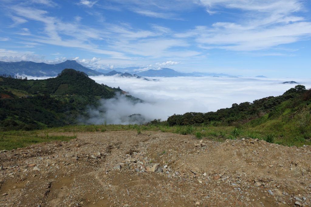 La sortie de Sozoranga est très difficile, c’est très raide ! Nous rejoignons la route et découvrons une mer de nuages dans laquelle nous allons plonger.