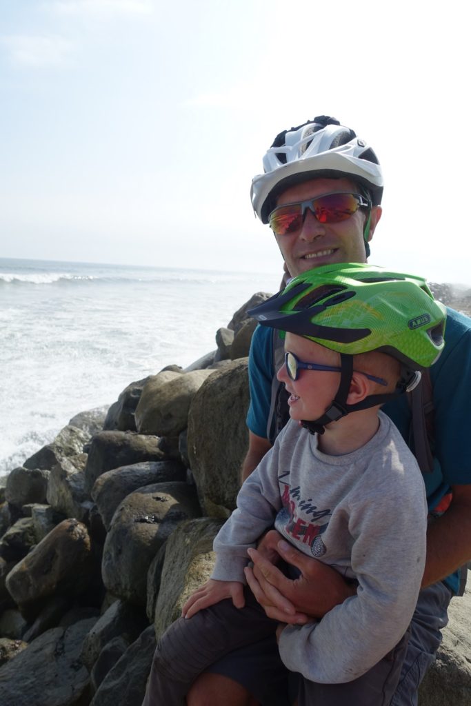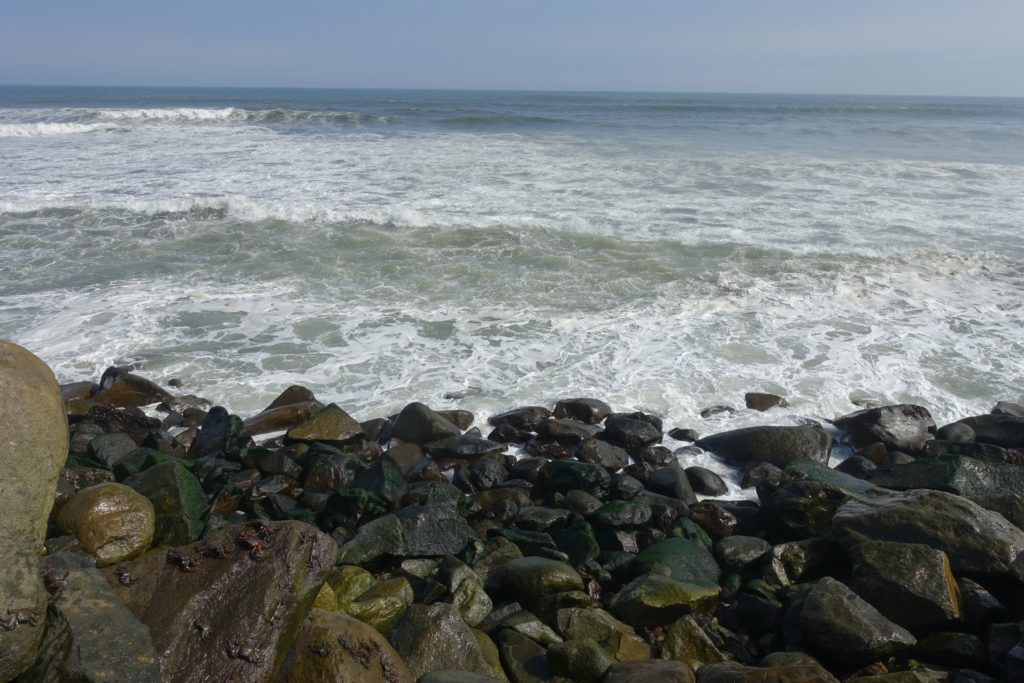 Nous retournons en ville pour le déjeuner, c’est salade aujourd’hui. Puis nous allons voir l’océan. Quelle surprise ! Quand nous arrivons, nous nous retrouvons face à un mur de rochers ! L’eau est juste derrière ! Pas de plage ici, pas de port non plus !