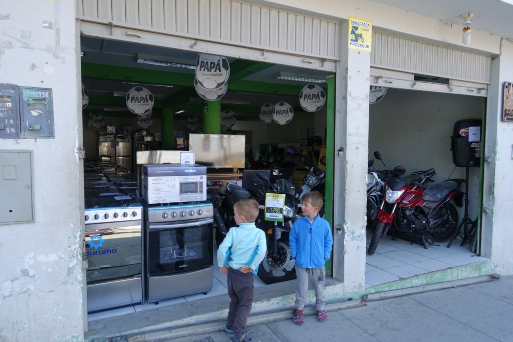 Nous retournons à l’hôtel. En passant, nous apercevons un de ces magasins qui vend de l’électroménager et des motos. Cherchez l’erreur…