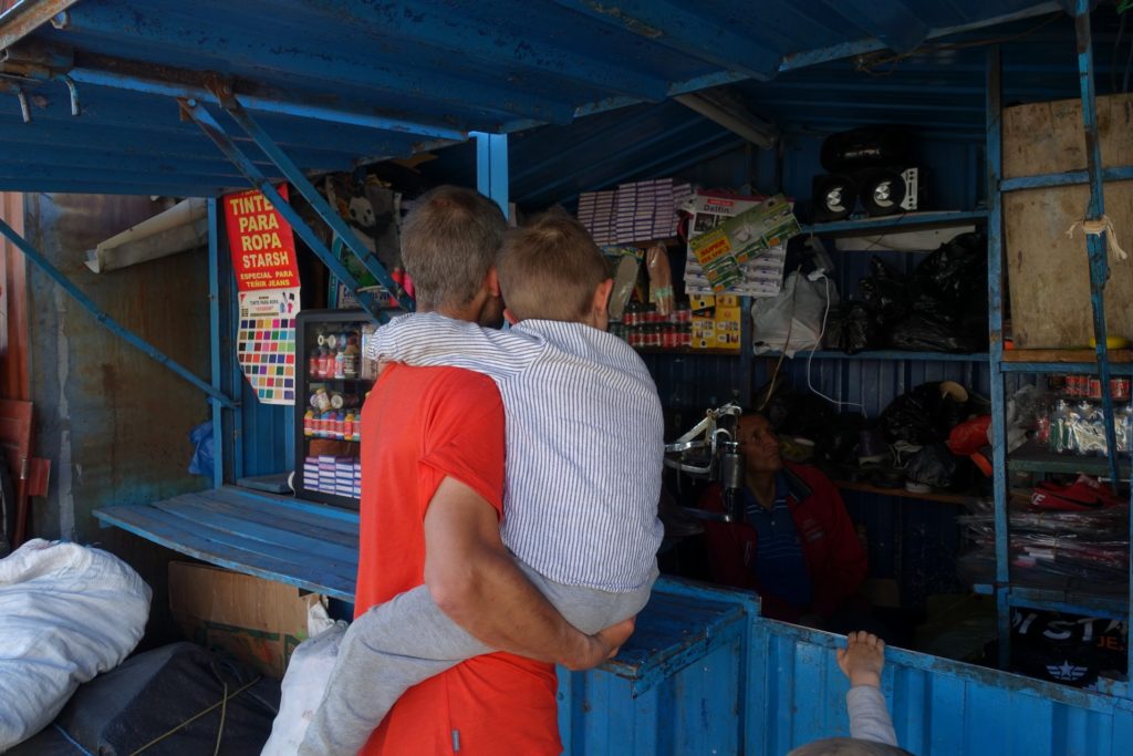 Depuis ce matin, nous tergiversons sur la suite du voyage. Essayons-nous de marcher avec les enfants dans la cordillère ? Faisons-nous le détour par le tunnel Olimpica et le Chavin de Huantar ? Nous nous rendons dans une agence pour nous renseigner sur des treks d’une journée. Pour la laguna 69, ça semble compromis. La personne de l’agence nous dit que peu de muletiers font ce trajet mais que nous pouvons toujours essayer d’aller au départ en combi pour voir. Nous allons réfléchir…