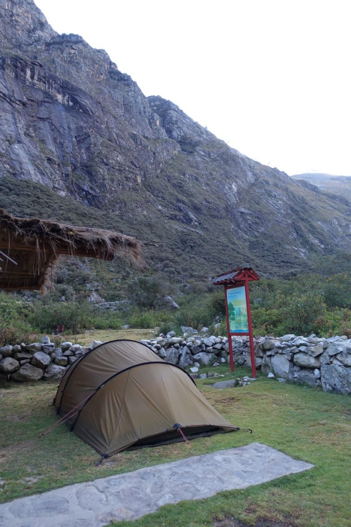 Malgré un réveil matinal, nous sommes prêts uniquement à 9h15. Nous filons acheter les billets du parc. Le garde nous explique que généralement les cyclistes mettent deux jours à rejoindre Chacas. Nous lui disons que nous allons essayer en un seul jour, nous ne voulons pas camper au-dessus de 4000 m, nous ne sommes pas encore assez acclimatés à notre goût. Nous prenons donc un pass d’une journée. C’est le même prix pour tout le monde, adulte et enfant !