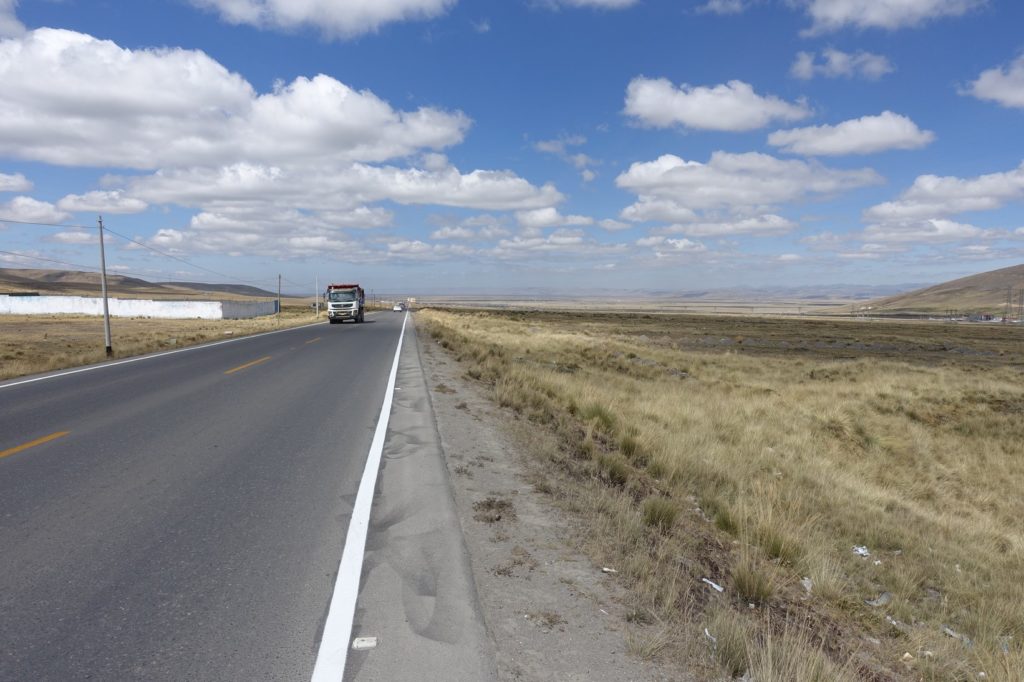 Nous rejoignons le sommet de Cerro de Pasco puis la route principale. Il y a quelques camions, mais dans l’ensemble, c’est supportable.