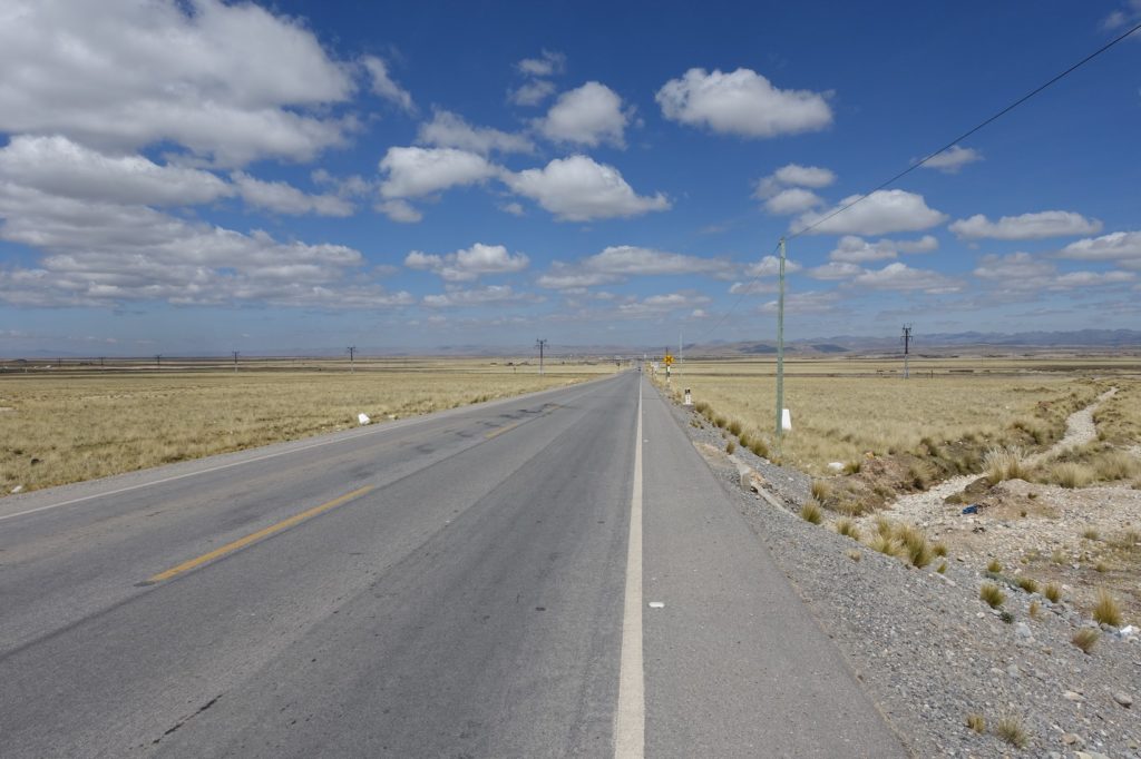 Nous découvrons ensuite le plateau. Il est vaste ! Finies les grosses ascensions, mais début des grandes lignes droites… Il y a beaucoup de trafic mais essentiellement dans l’autre sens. Il nous faut cependant faire attention quand nous nous faisons doubler. Certains véhicules ne font pas trop gaffe à nous.
