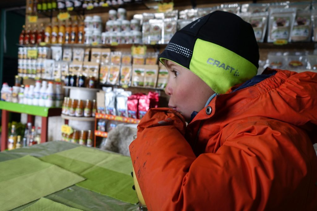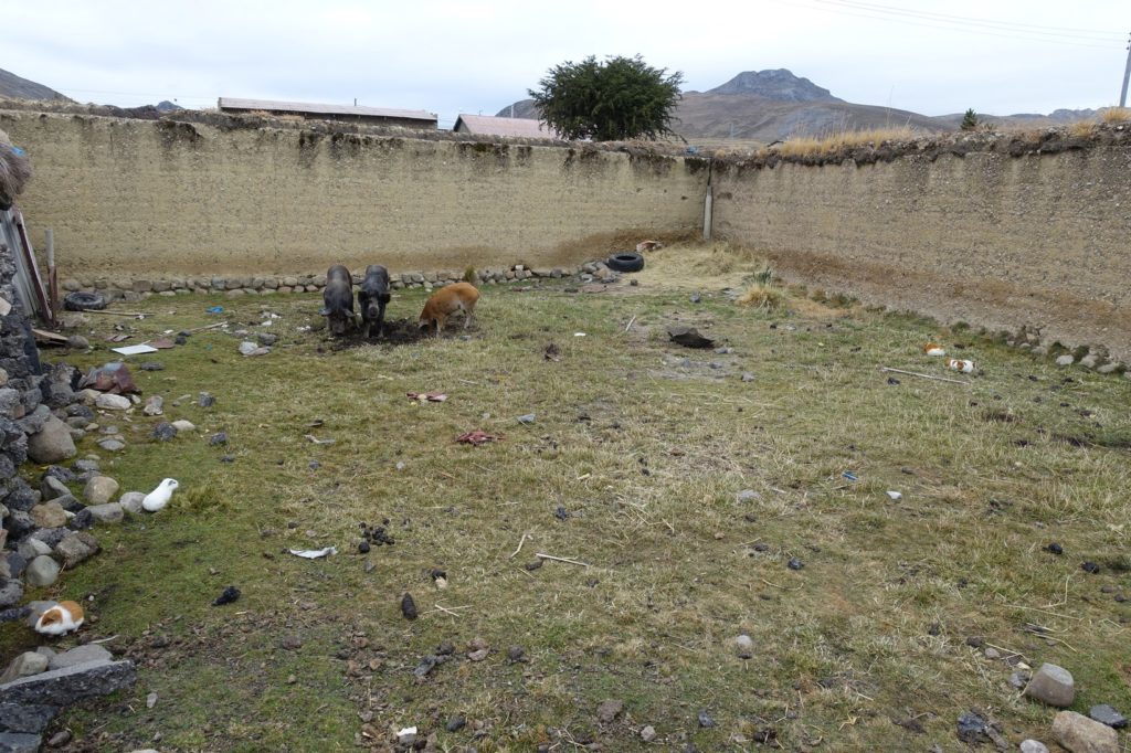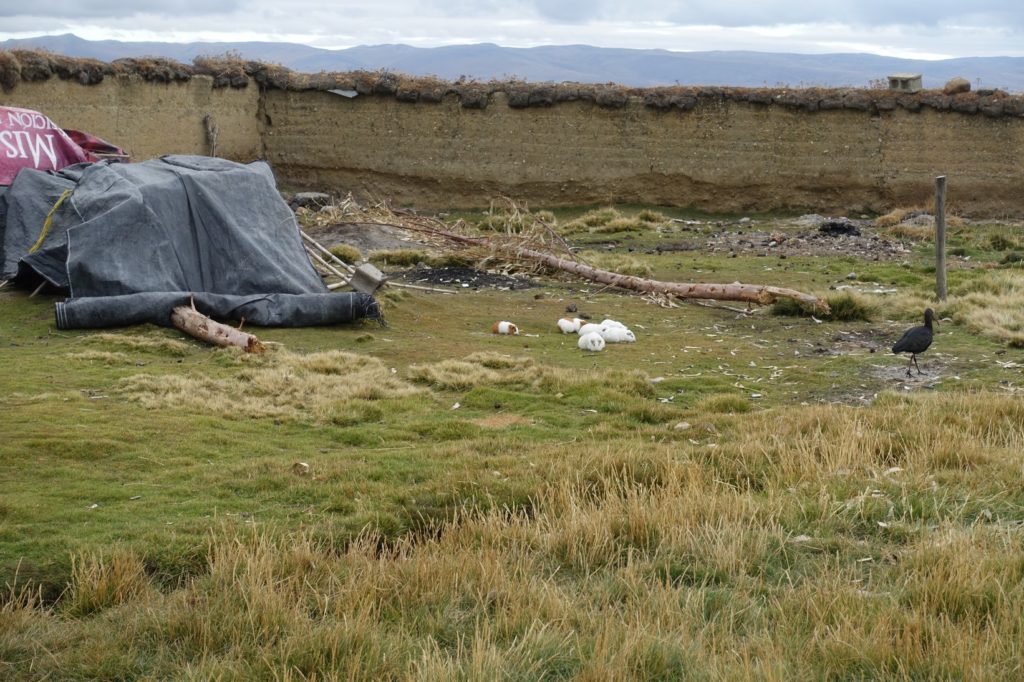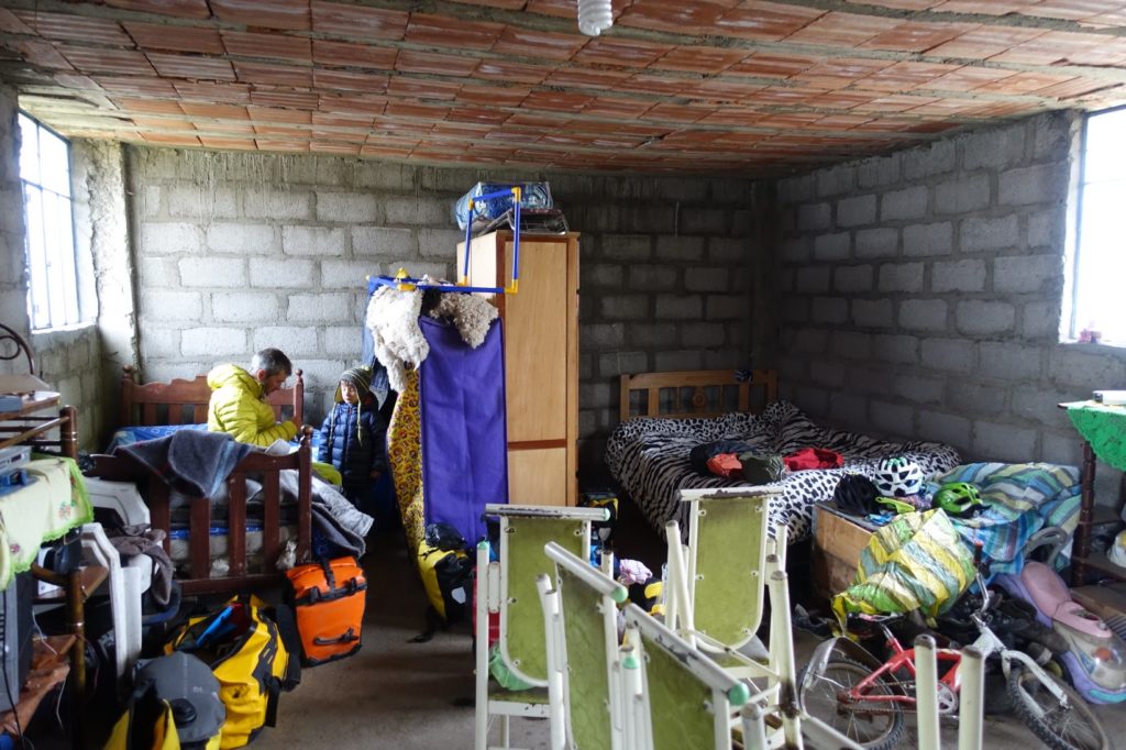 La nuit a été reposante, même si les matelas étaient bien durs. Nous nous levons à 7h00, plions les affaires. Dehors, il n’y a pas de bruit, c’est calme. Nous sortons pour voir si nous pouvons utiliser la cuisine pour préparer le petit-déjeuner. Le ciel est tout gris. Les cochons d’inde se promènent.