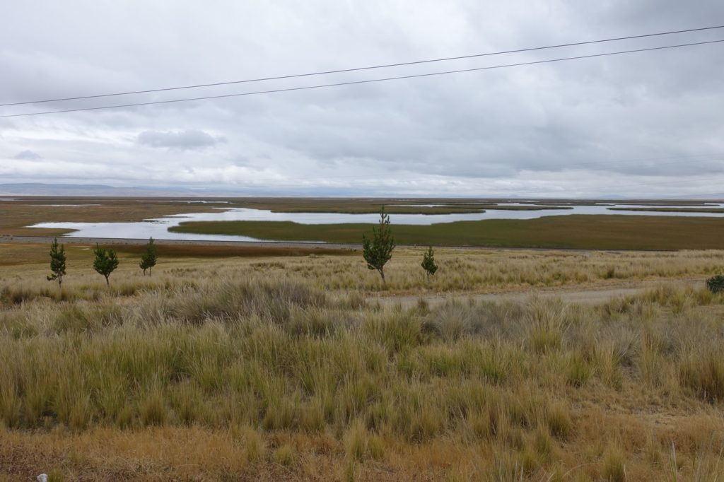 Nous avons encore 18 km à parcourir pour quitter le plateau. La pluie s’arrête et reprend, le vent se lève… Nous ne voyons toujours pas le soleil. Par contre, nous voyons nos premières vigognes !
