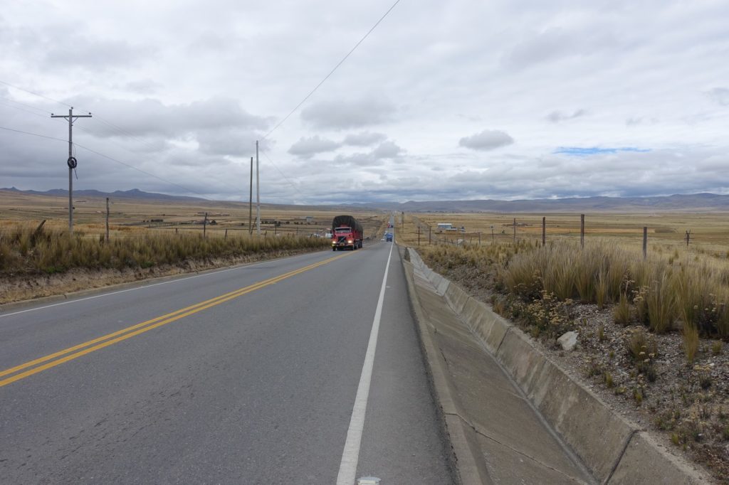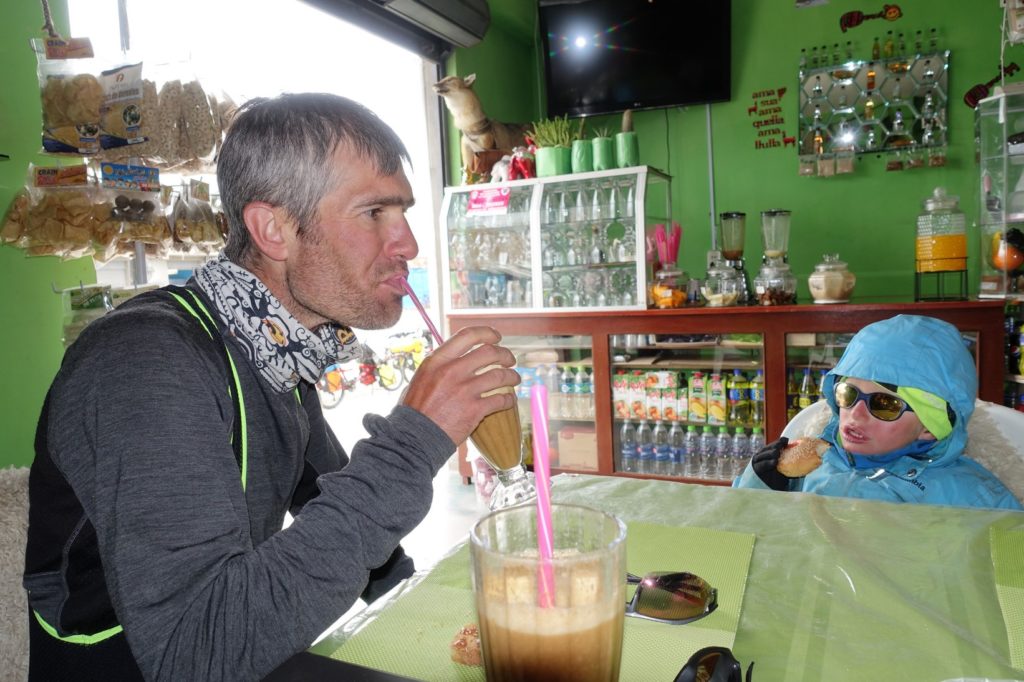 Nous avançons plutôt bien. Arrivés à Junín, nous décidons de goûter le jus de maca. Ce n’est pas extra… Il est 11h40, nous en profitons pour manger quelques brioches.