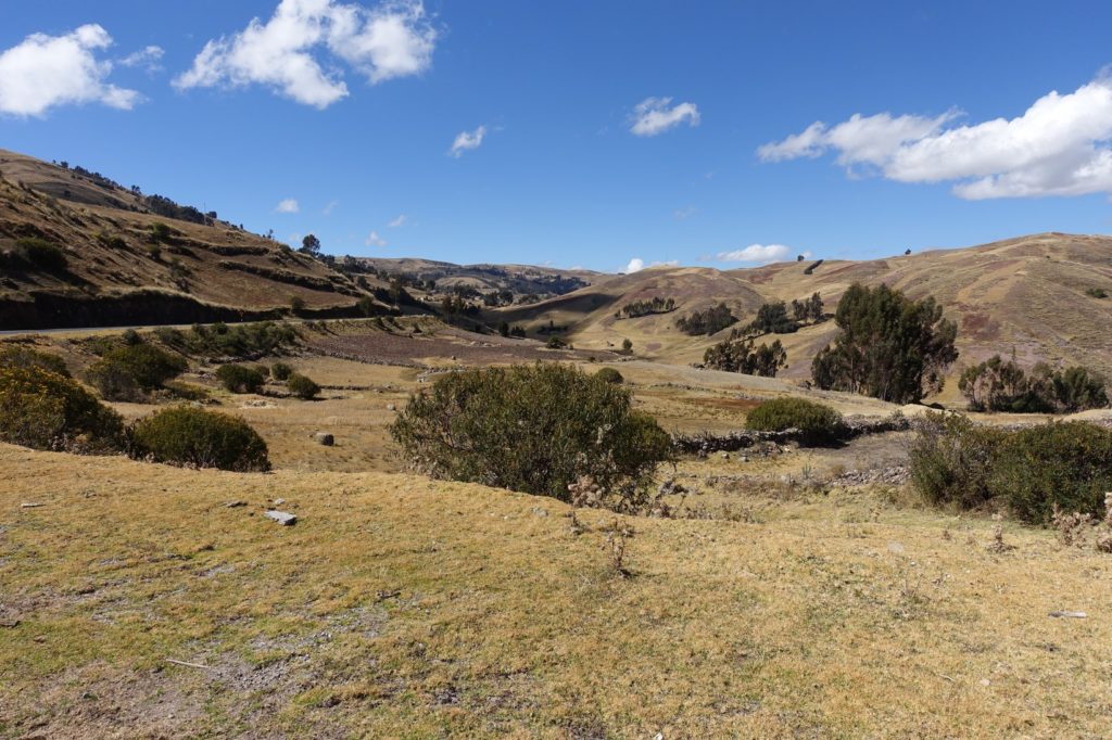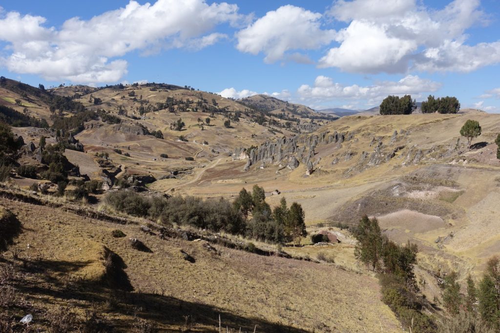 Nous nous mettons en route à 9h30, nous quittons la ville par une piste et rejoignons la belle route goudronnée. C’est confirmé, nous restons sur le plateau, pour redescendre directement au rio Mantaro, c’est bien une piste, en descente très raide. Nous ne retrouvons pas le désert d’hier mais c’est très beau. Nous faisons les montagnes russes suivies d’une bonne descente. Nous traversons de nombreux petits villages. Nous voyons même des forêts de pierres.