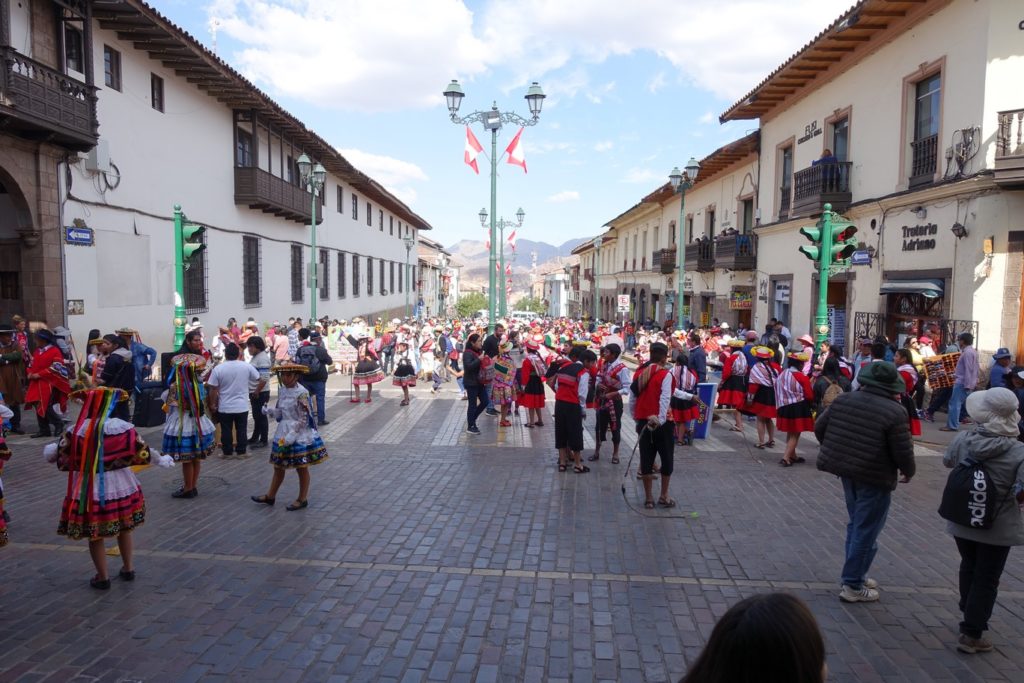 Voilà qui est réglé. Maman retourne à l’auberge pendant que Papa va voir un autre magasin de vélo. Tout est calme, Irina est seule, en fait Patrice est resté sur la place avec les enfants. Il y a les écoles qui défilent et qui dansent. Ils en profitent. Du coup, les deux mamans papotent. Puis les enfants rentrent, s’en suit Papa qui est au final passer chez le coiffeur. La famille de Sisteron part prendre un bus pour Ollantaytambo. Nous finissons par choisir un compteur que Papa va acheter. Les enfants font les fous dans le patio pendant que Maman tente désespérément de mettre à jour le blog (internet est capricieux).