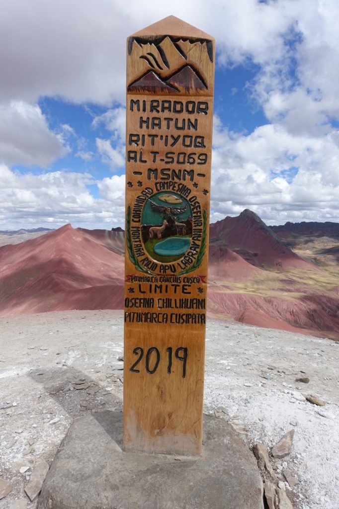 Il n’y a vraiment plus grand monde en ce début d’après-midi. Dans la montée pour le point de vue sur la vallée rouge, Maman traverse les multiples couleurs. Il n’y a quasiment personne. La voilà au mirador, à 5069 m d’altitude (nouveau record), la vue est époustouflante !