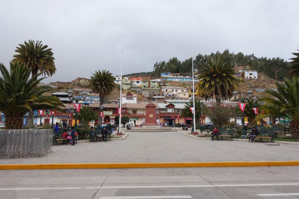 C’est vers 15h00 que nous arrivons à Sicuani. Nous sommes accueillis par la pluie en crachin, par chance, ça ne dure pas longtemps. Nous nous arrêtons prendre un goûter et acheter quelques fruits. Nous faisons ensuite un arrêt à la BCP pour remplir notre porte-monnaie.