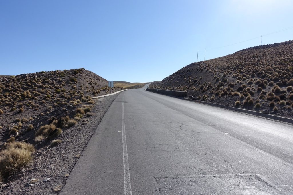 Il est quasiment 18h00 quand nous sommes enfin libérés. Les douaniers nous demandent où nous allons dormir. Nour leur disons vouloir camper, ils nous disent qu’il fait très froid ici et qu’il faut continuer la route. Nous espérions une proposition de logement, mais c’est raté. Nous nous mettons donc en route. Nous apercevons un grand bâtiment, ce doit être leur logement et cantine, ultra chauffé. Nous tentons quand même notre chance mais nous essuyons un refus catégorique : « c’est un site du gouvernement ici, nous ne pouvons pas ». Bon… Bienvenue au Chili ! Nous attaquons donc la descente.