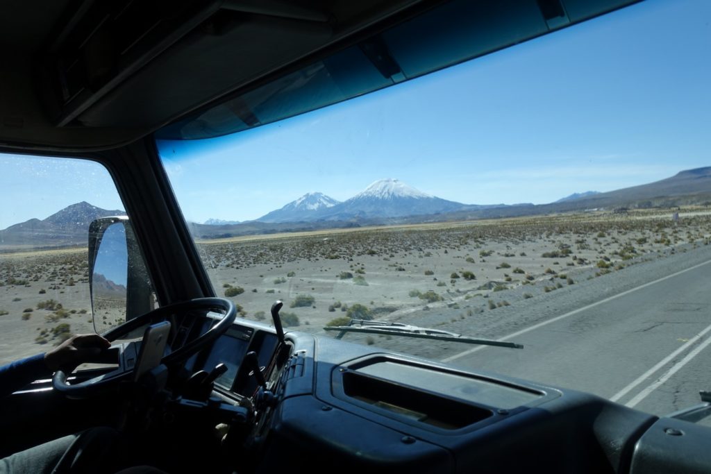 Nous passons un contrôle de police, Johnny doit descendre montrer les papiers, mais ça ne dure pas bien longtemps. Nous finissons par rejoindre Chungara, il est 11h10. Nous remercions Johnny et descendons du camion.