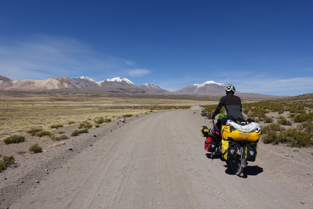 Au loin, nous apercevons un cycliste dans l’autre sens, c’est Mike ! Il rejoint Putre. Nous lui faisons des grands gestes et nous le klaxonnons, pas sûr qu’il nous ait reconnus.