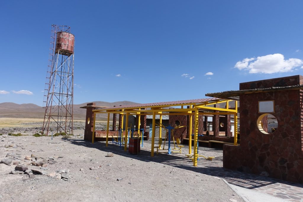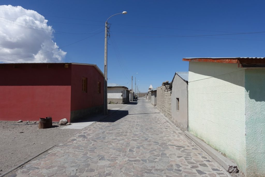 Puis c’est reparti, toujours avec cette satanée tôle ondulée ! Nous traversons Enquelga et retrouvons la civilisation le temps de quelques mètres. Nous décidons de ne pas récupérer de l’eau, nous pensons vraiment arriver à Colchane pour ce soir.
