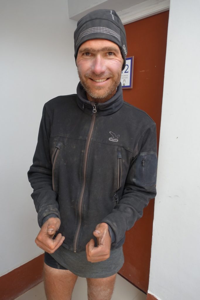 Le vent souffle toujours très fort, nous nous dépêchons et arrivons à Colchane dans la tempête. Le sable vole de toute part. Nous demandons au point d’information s’il y a un hôtel dans la ville. Il n’y en a qu’un, il sera pour nous. Nous allons vite nous mettre à l’abri, il n’est pas donné mais nous avons peu dépensé ces derniers jours, en plus le petit-déjeuner est inclus !
