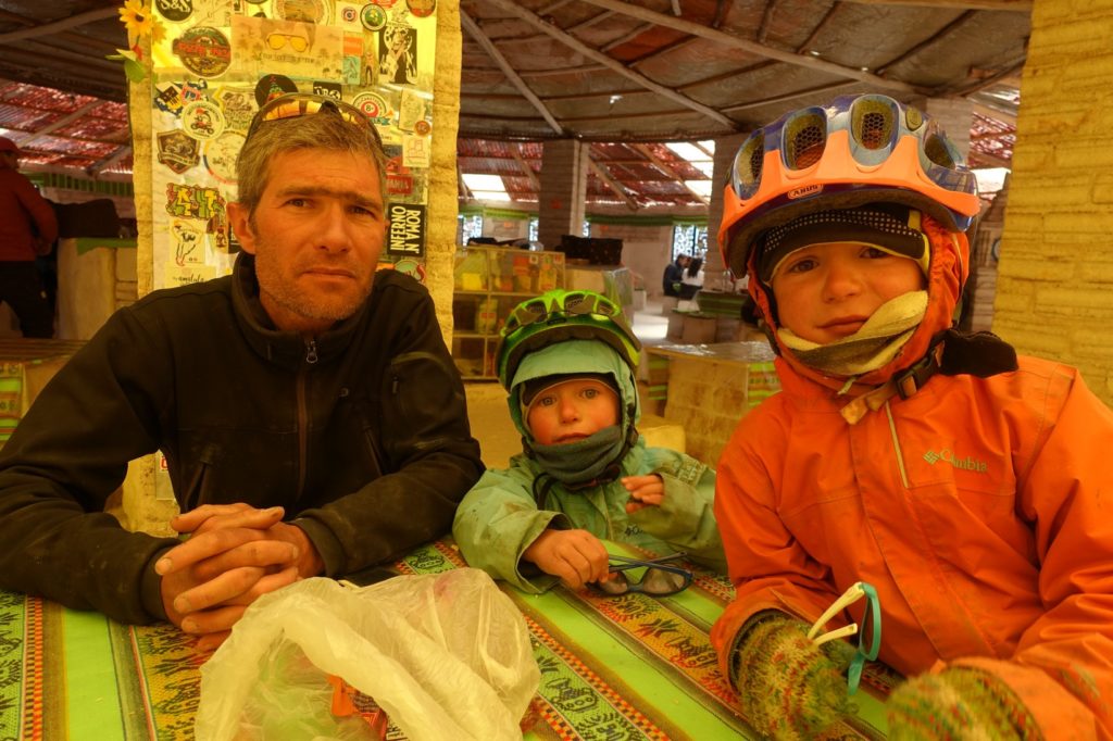 Il n’a pas gelé dans la tente et pourtant nous avons eu plus froid que d’autres nuits. Nous ne savons pas si c’est dû à l’humidité ou au vent mais les parents n’ont pas très bien dormi. Martin et Lucas n’ont rien dit et ne se plaignent pas ce matin. C’est déjà ça… Nous sommes surpris, nous n’avons pas entendu de 4×4 passer tôt ce matin.