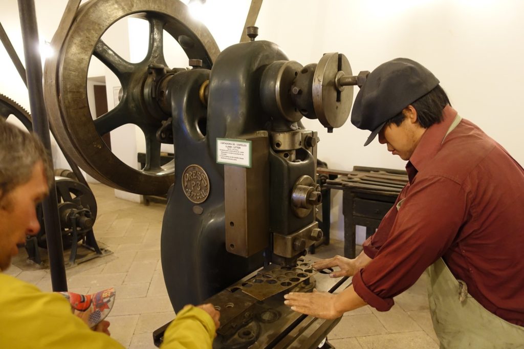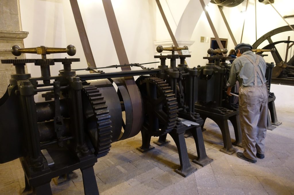 Avec tout ça, il est presque 16h00 et nous n’avons toujours pas mangé ! Nous allons à la maison de la monnaie, la dernière visite guidée commence à 16h30, nous y grignotons des cacahuètes en attendant. Nous avons une bonne surprise, il y a une visite guidée en français et nous sommes seuls avec notre guide ! Nous voyons l’évolution de la fabrication des pièces, à la main, puis avec différentes machines : une presse manuelle, une presse avec des mules, une presse à la vapeur puis une presse électrique.