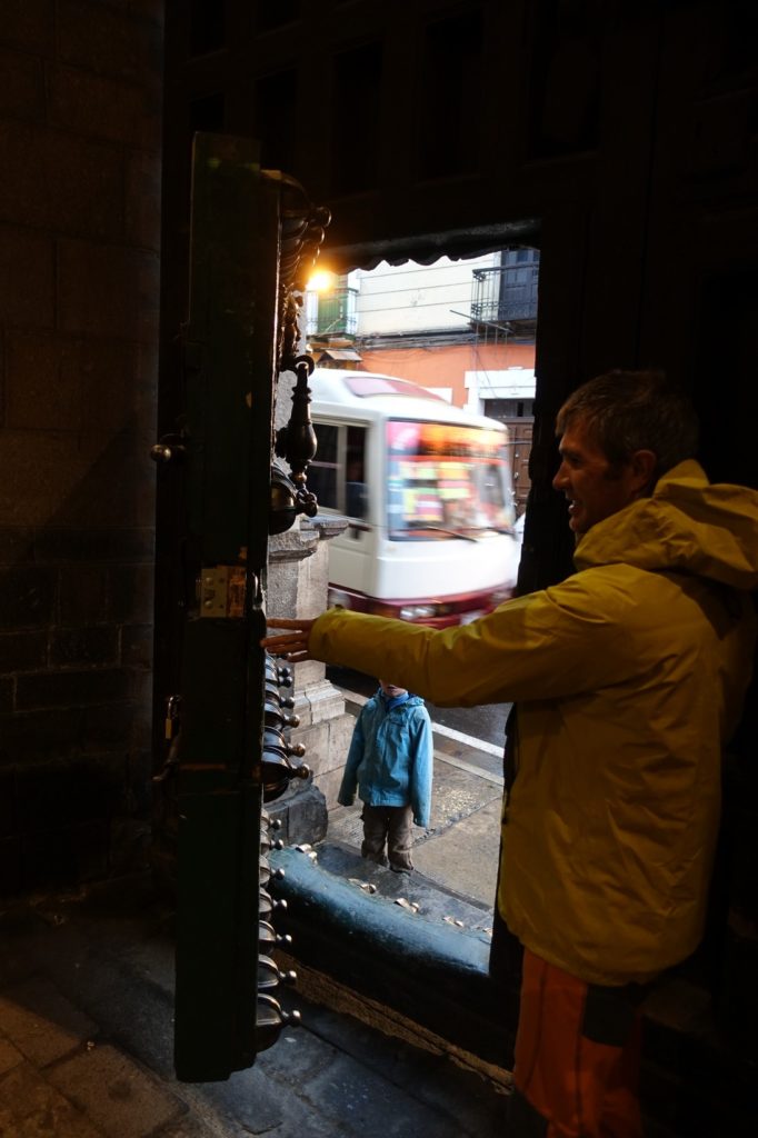 Nous prenons un micro direction le centre-ville puis nous rendons à pied à l’hôtel où les EveilNomade avaient dormis. Il tombe des trombes d’eau. Ce n’est pas donné, Maman va voir un autre hôtel, le dortoir n’est pas très accueillant. Nous restons donc au Casa Blanca, il y a de l’eau chaude et le chauffage. Nous serons bien ici.