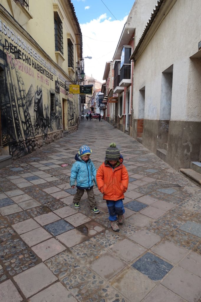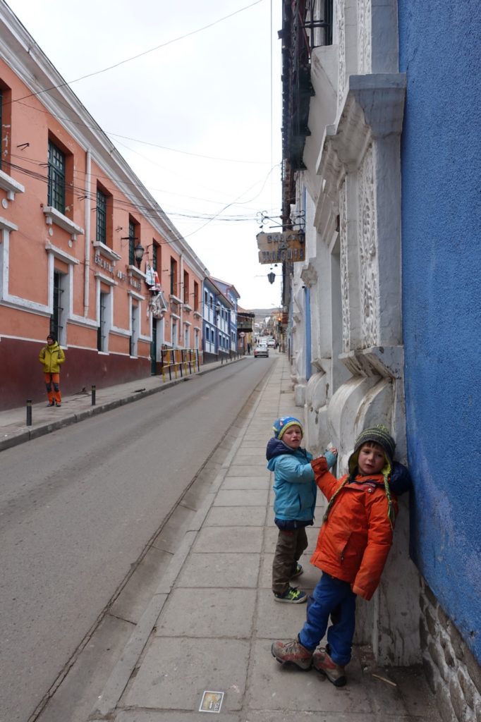 Papa et les enfants étant en manque d’un dessert, nous allons manger des gâteaux. Ils ne sont pas exceptionnels, nous regrettons ceux de Sucre. Nous rentrons ensuite nous reposer à l’hôtel. Nous tentons de faire un temps calme, voire une sieste, mais impossible de dormir. Martin n’arrête pas de faire du bruit et embarque Lucas dans ses délires. Dehors, nous entendons des grosses averses.