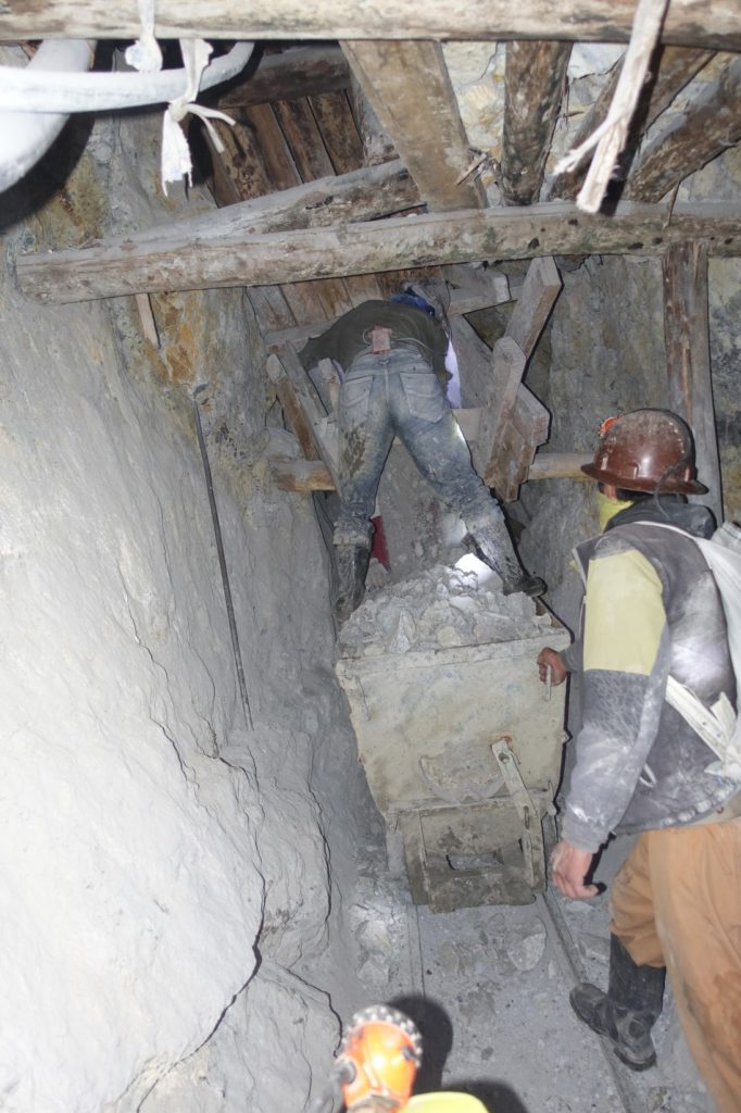 Nous continuons donc d’avancer. D’un coup, il fait très chaud. Nous apercevons un wagon plein de minerai, de nombreux petits tunnels. Certains sont plein de pierres. En fait, les mineurs font sauter l’intérieur à la dynamite puis amènent un wagon en dessous pour déverser les pierres.