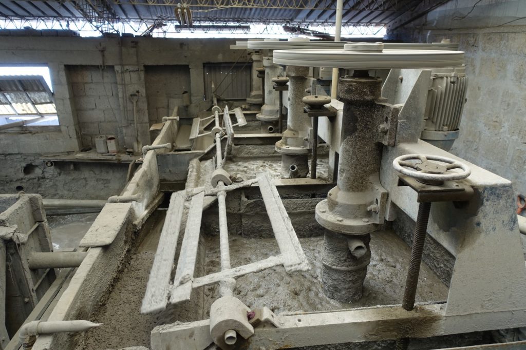 Puis nous nous rendons à la raffinerie. Elle est actuellement à l’arrêt, comme beaucoup à Potosí car le cours de l’argent est tellement bas qu’il n’est pas rentable de la faire tourner. Mais nous voyons tout de même les différentes étapes. C’est un des employés qui nous fait la visite. Ils concassent les pierres ramenées par camion. Puis en font de la poudre. Ils séparent ensuite les différents minerais (argent, plomb, zinc) à l’aide de composants chimiques et d’écrémeuses. L’employé remet les machines en route pour nous montrer le processus, top. Puis, pour finir, ils font sécher le tout pour récupérer les métaux.