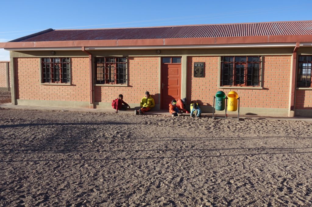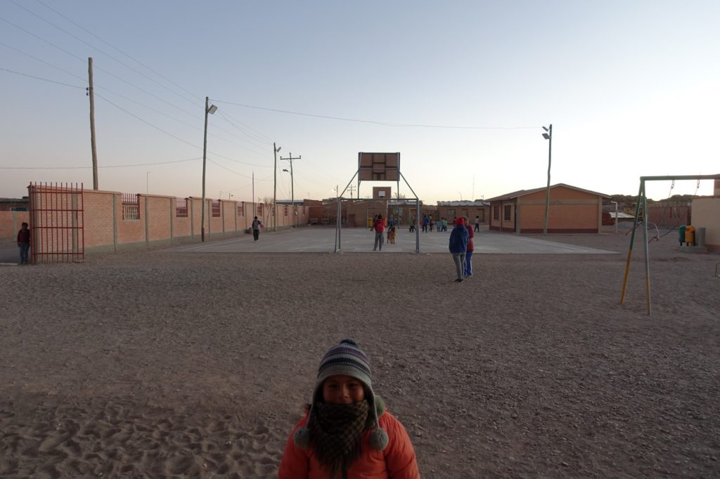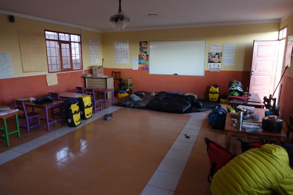 Nous patientons au soleil puis Papa demande à institutrice si nous pouvons dormir dans une pièce. Elle nous répond que non. Ce n’est pas grave, nous allons monter la tente. Nous nous apprêtons à poser le tapis de sol quand elle vient vers nous et nous propose de nous installer dans sa classe. Par contre, il faut vider les lieux avant 8h30 demain. Nous mettrons le réveil et ne traînerons pas. Nous nous installons pendant que les enfants jouent avec leurs copains d’un soir.