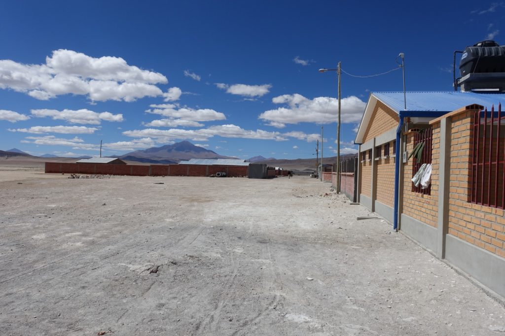 Nous allons donc à la douane. Idem, il n’y a personne. Ce coup-ci, nous devons attendre que les douaniers aient terminé leur repas. Heureusement, cela ne dure pas trop longtemps. Un douanier arrive, Papa s’occupe de la déclaration des vélos. Le douanier donne des yaourts et des bananes à Martin et Lucas. Ils sont gâtés aujourd’hui ! Maman va chercher des cuillères dans le sac bleu. Aïe ! Une bouteille d’eau était mal fermée, il y en a deux litres dans le sac ! Tout est trempé. Il faut tout sortir pour faire sécher. Au retour de Papa, nous prenons la décision de nous arrêter à Ollagüe pour la journée. Ce sera un peu comme un jour de repos du coup.