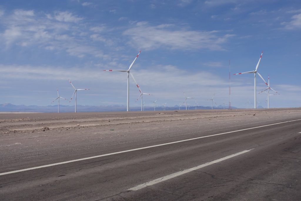 Nous traversons un champ d’éoliennes. Dommage que Martin fasse la sieste.