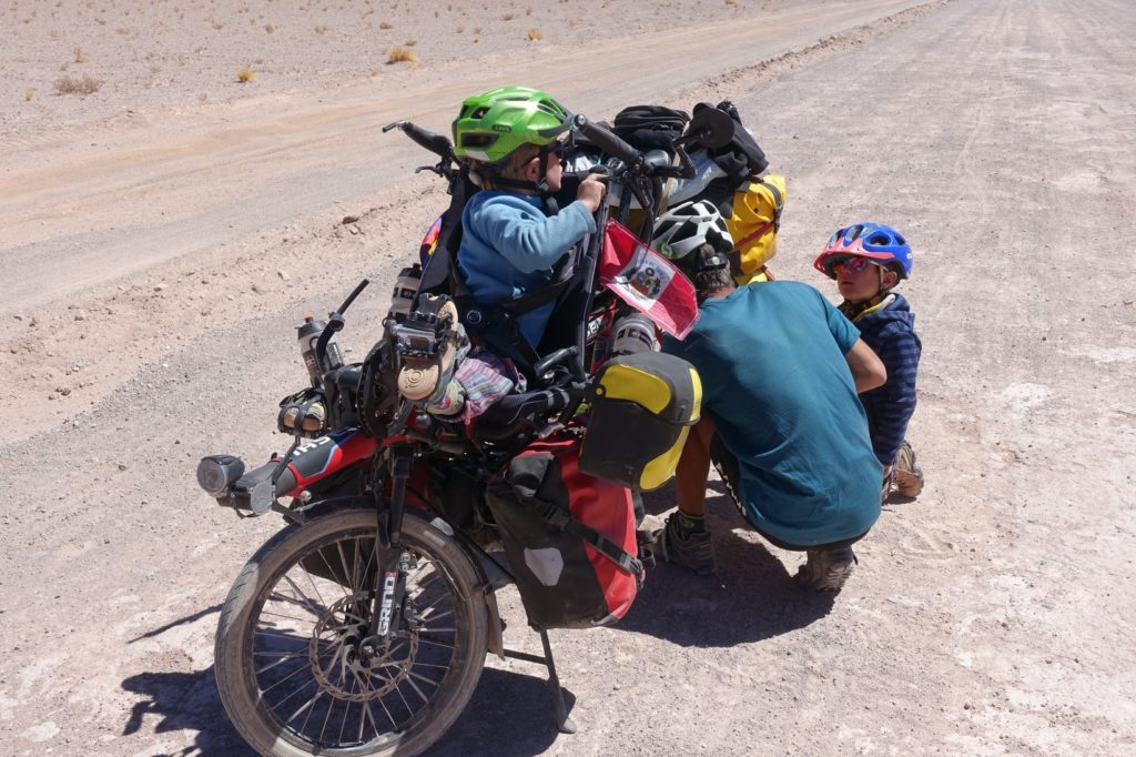 Maman va ensuite faire des courses. Nous sommes dimanche, tout est fermé sauf une tienda qui n’a vraiment pas grand chose. Aucun fruit, aucun légume, c’est même pire qu’en Bolivie… Nous n’aurons pas grand chose à manger pour les prochains jours, il nous faut vraiment rejoindre San Antonio au plus vite !