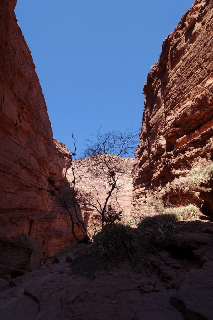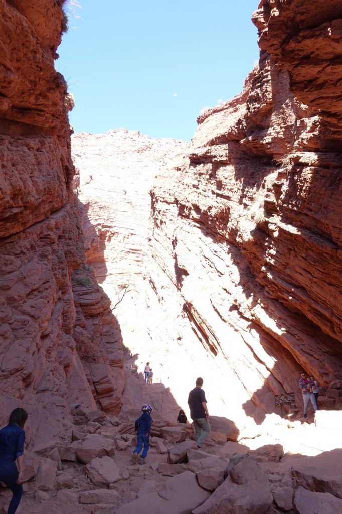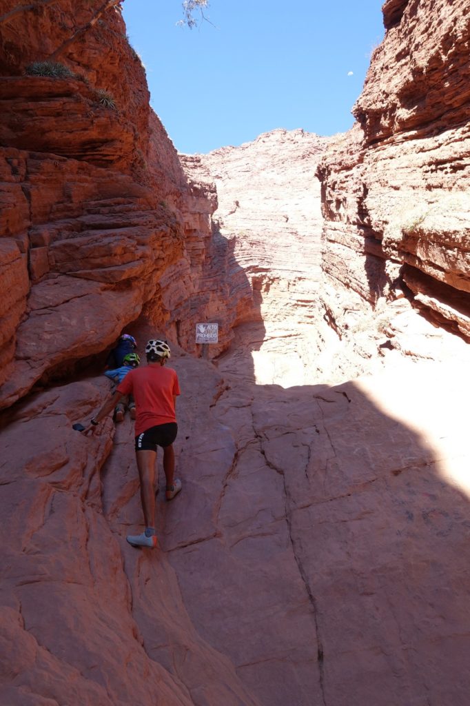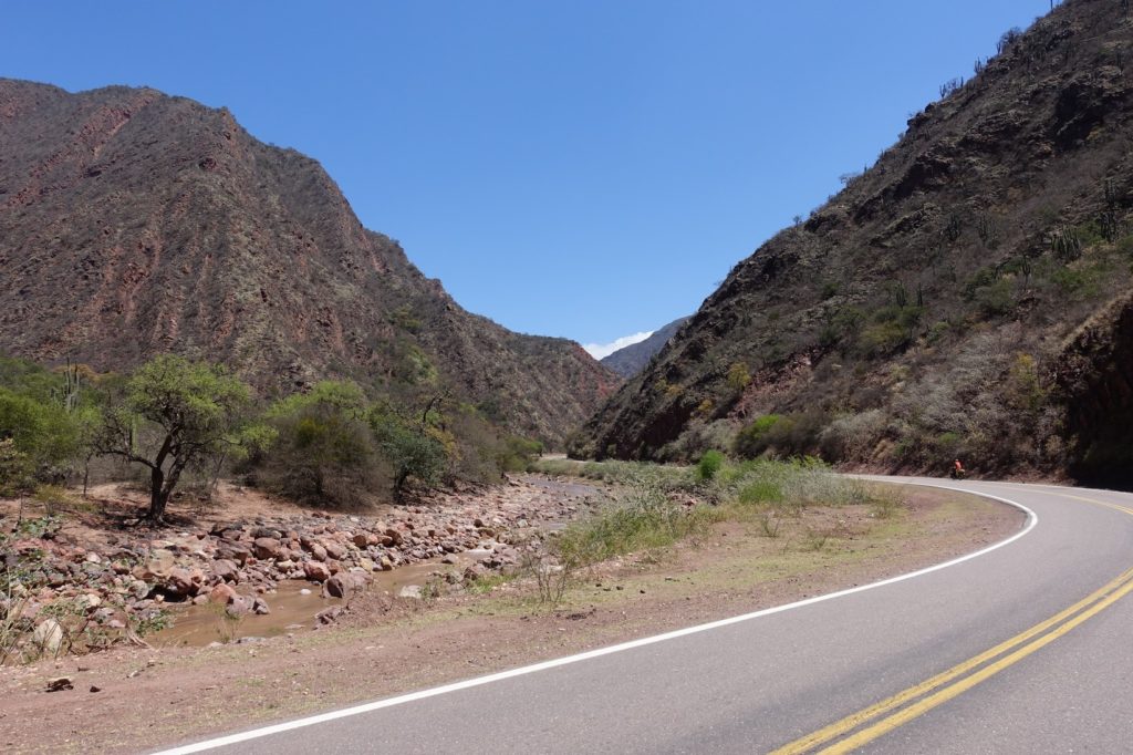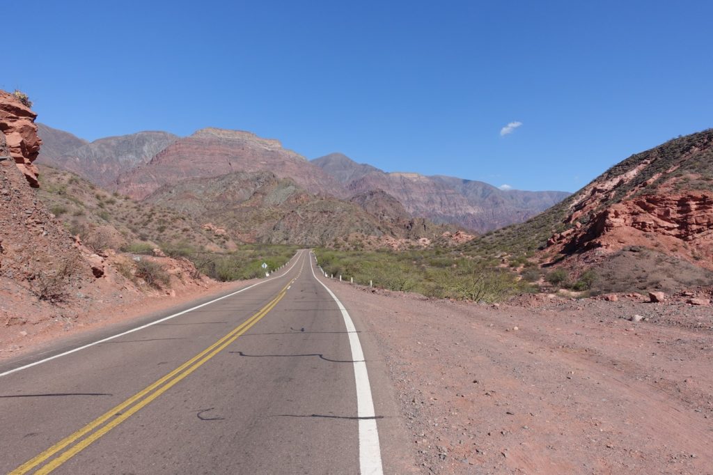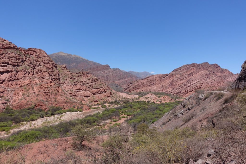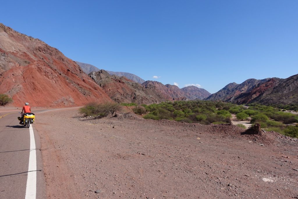 Nous entrons ensuite dans la quebrada de las conchas. Gros changement de paysage. Nous croisons énormément de motards, ils nous saluent et nous encouragent, de même que les voitures et les bus.