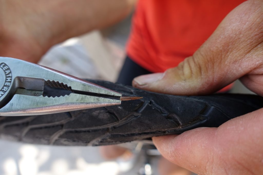 En traversant cette petit ville, Maman crève. Hop, 3ème crevaison ! C’est une belle épine qui a tout traversé ! Les EveilNomade partent chercher une boulangerie pendant que nous réparons la panne. Puis Papa se rend compte que nous avons loupé une cache pas loin. Il y retourne. Maman rejoint tout le monde et nous partons, Papa et Lucas nous rattraperont.