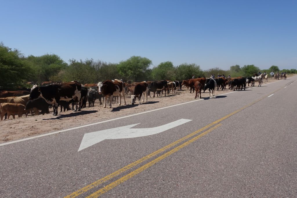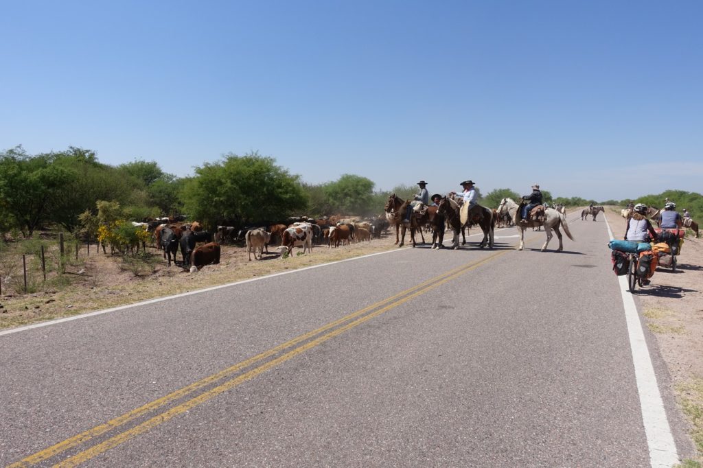 Nous croisons un troupeau de vaches accompagné de gauchos. Ils sont classes ! Leurs chevaux sont équipés avec des protections en peau.