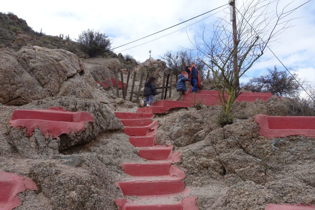 Ses sœurs nous emmènent voir le Christ qui domine la ville. Le soleil n’a pas vraiment envie de pointer le bout de son nez mais au moins, il ne pleut pas ! Les enfants courent et grimpent un peu partout.