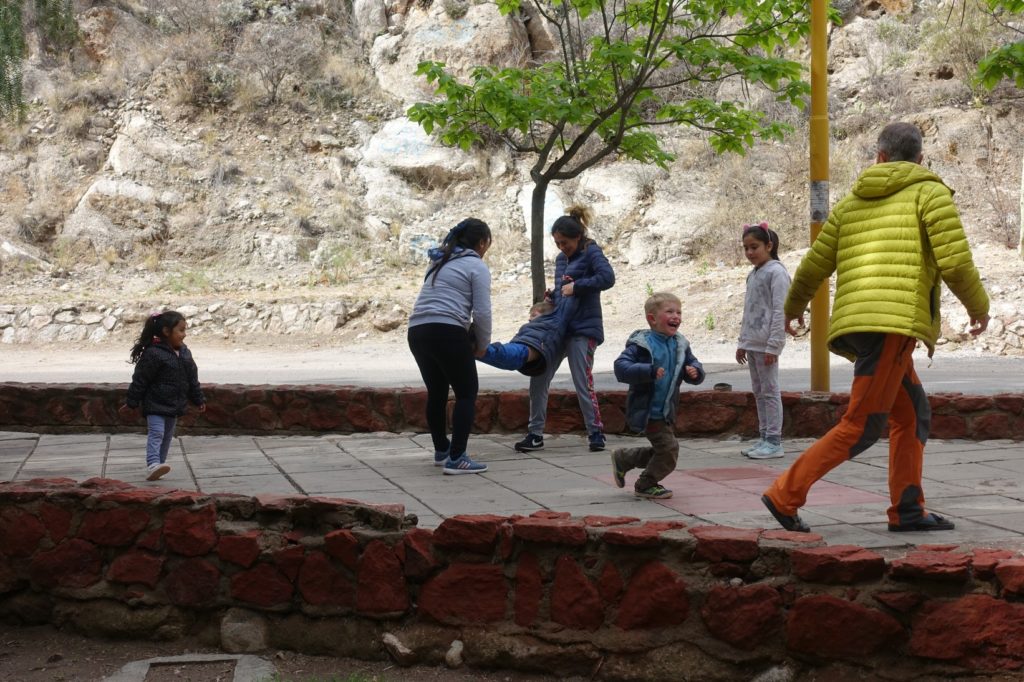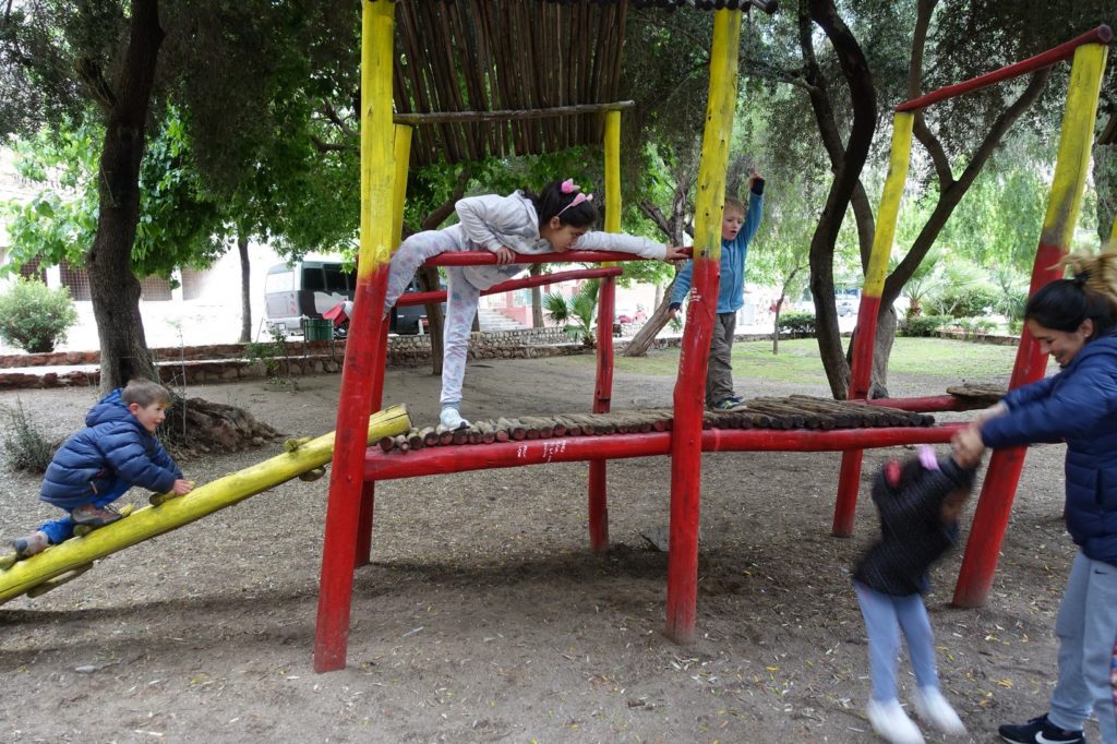 Comme à chaque jour de repos, nous prenons le temps et nous traînons. Vers 12h30 nous sortons pour aller voir Federico, son atelier de vélo est juste à côté. Nous achèterons quelque chose en chemin pour manger. Finalement, nous le croisons 2 cuadras plus loin et l’accompagnons chez lui ou plutôt chez sa famille. Nous sommes accueillis par ses sœurs et sa maman. Un peu comme d’habitude, nous sommes assaillis de questions sur notre voyage et sur la France. Elles nous invitent à manger, Papa file avec Federico et Lucas acheter des milanesas pendant que Martin joue avec les 2 petites filles de la maison.