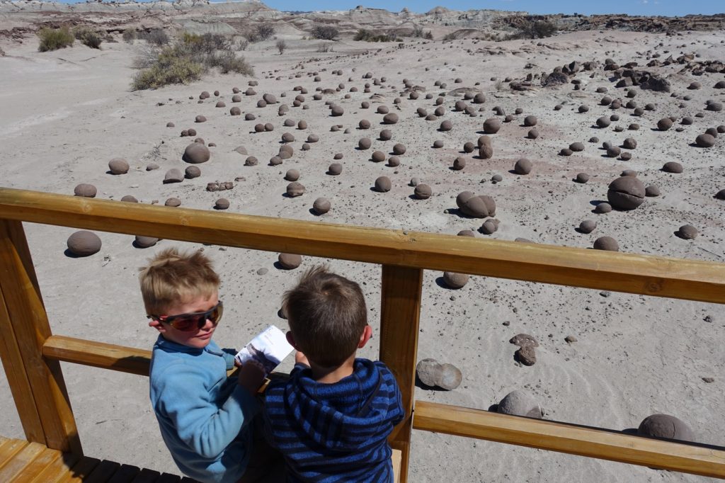 La visite dure environ 3h30, nous faisons cinq arrêts. A chaque fois, les enfants courent partout et nous empêchent d’écouter le guide. Globalement, ils sont pénibles pour le coup. Mais nous profitons tout de même des paysages. Le vent souffle très fort… Les pierres rondes sont particulièrement impressionnantes !