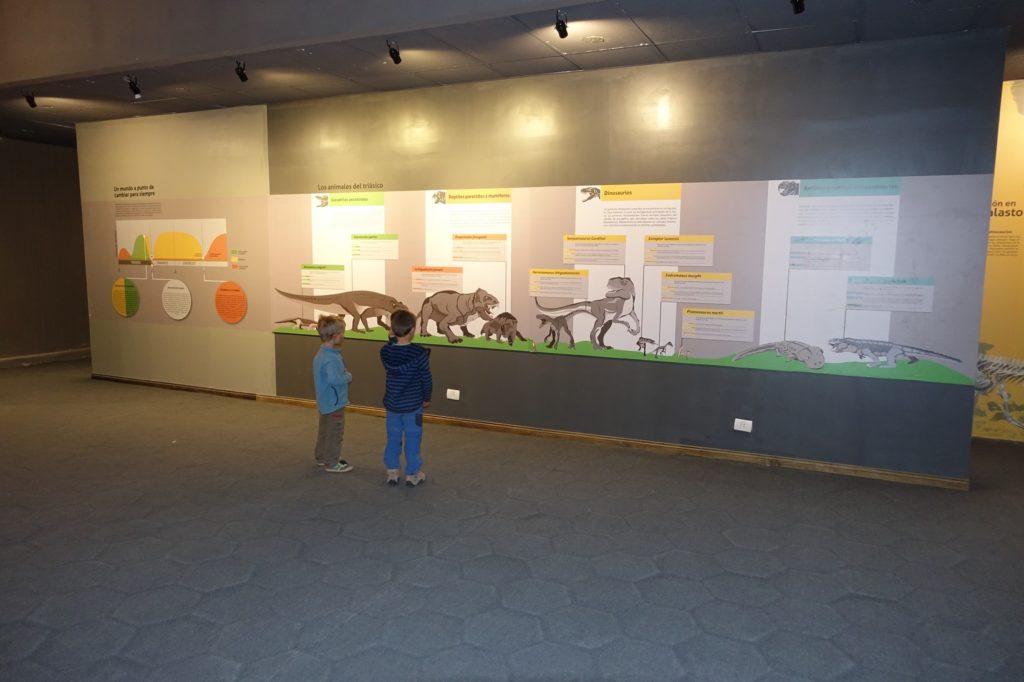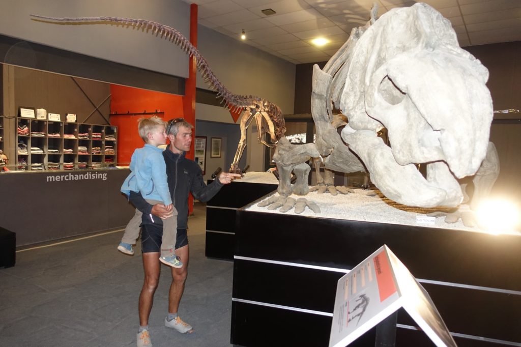 De retour, nous disons au revoir à Raoul et Lucia. Nous voulons prendre une photo mais Martin et Lucas ont filé aux jeux. Nous les recroiserons sûrement tout à l’heure. Nous allons prendre le goûter, toujours au restaurant. Nous enchaînons avec la visite du musée. Les enfants sont impressionnés par les squelettes et les reconstitutions de dinosaures du trias. Ils sont intéressés !