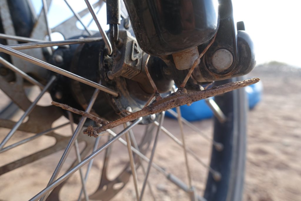 C’est tard que nous repartons. Le vent s’est levé, c’est tout de suite un peu plus dur. Nous espérons pouvoir boire un coup dans un petit restaurant mais manque de chance il est fermé. Nous prenons donc le goûter à l’ombre de leur terrasse sans boisson fraîche.